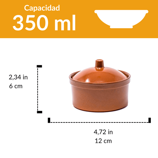 Cocotte de barro con tapa 12 cm | Terracota artesanal 350 ml
