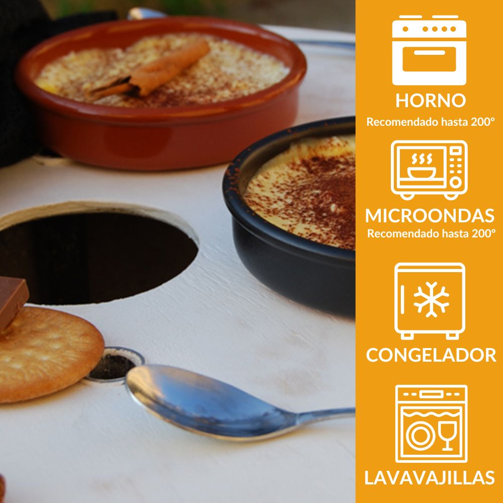 Esta cazuela de barro de 12 cm está pensada para postres tradicionales como la crema catalana, pero también es perfecta para tapas, entrantes, raciones individuales o postres.