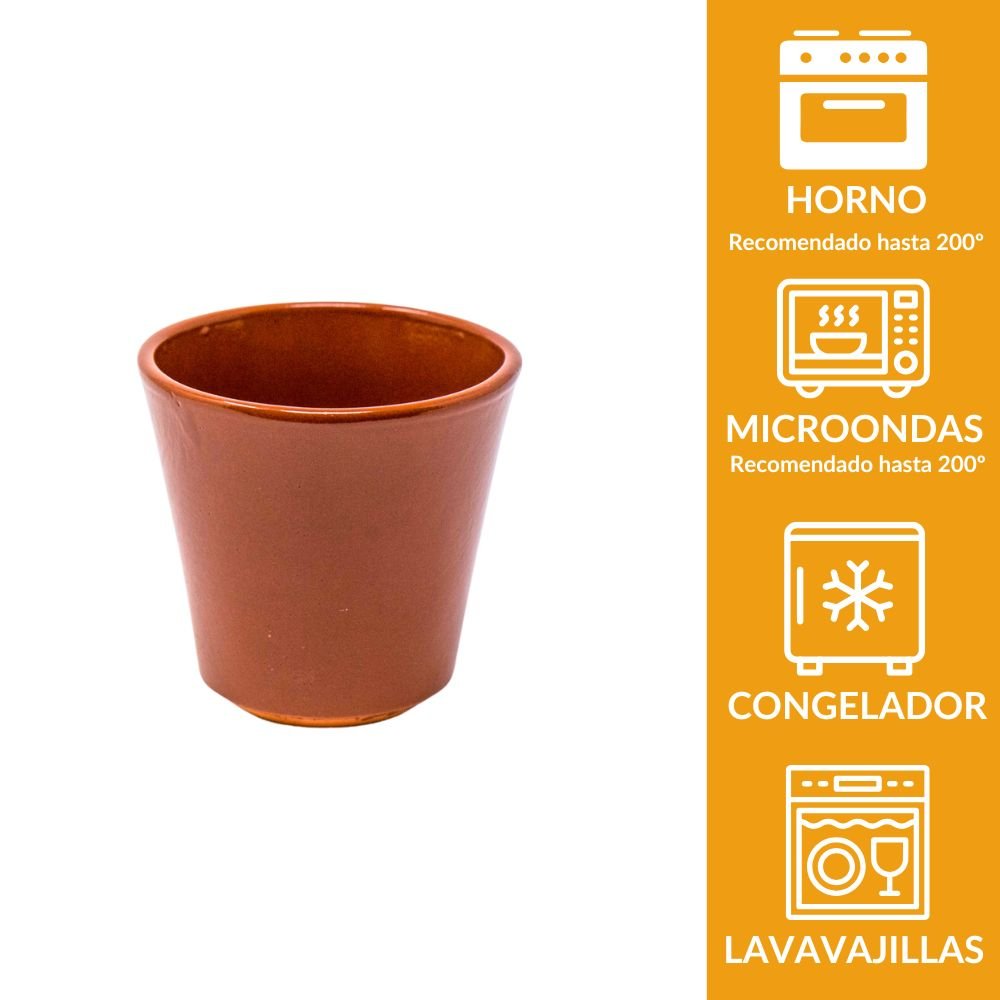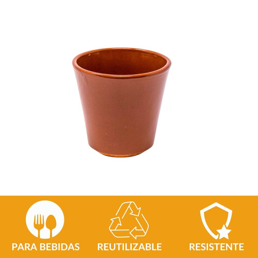 Este vaso de barro marrón de 8,7 cm y 200 ml de capacidad es ideal para servir cafés, infusiones, chupitos, vinos o raciones individuales de bebida con un toque rústico y mediterráneo.